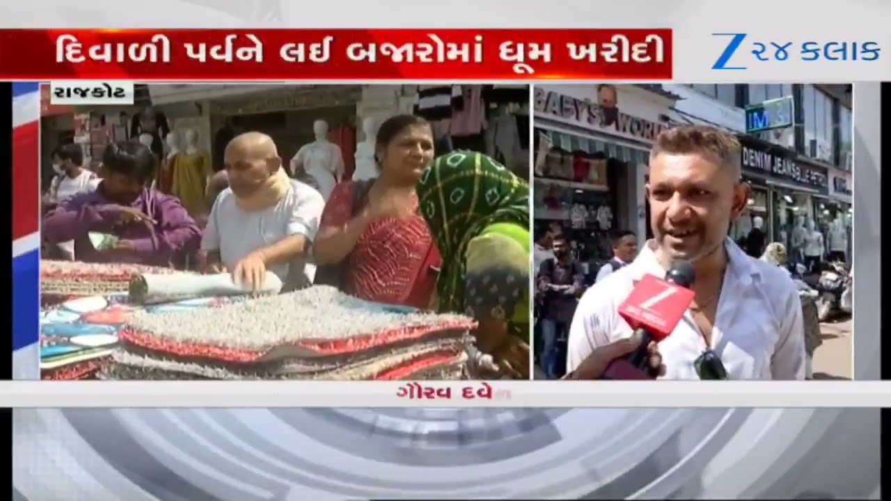 #Zee24Kalak Rajkot: Diwali પર્વને લઈ બજારોમાં ધૂમ ખરીદી, ધર્મેન્દ્ર રોડ અને ગુંદાવાડી બજારમાં મેળા જેવો માહોલ