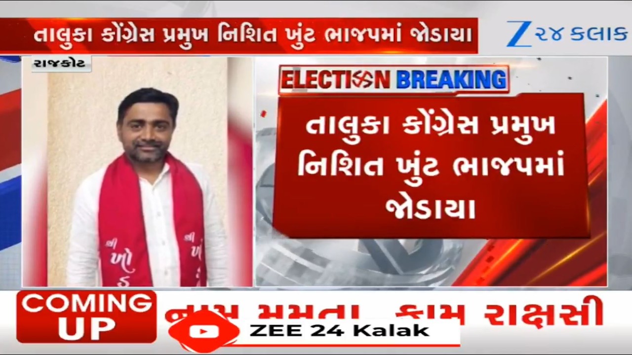 #Zee24Kalak Rajkot: Setback for Congress on Final Nomination Day as Taluka President Nishit Khunt Joins BJP
