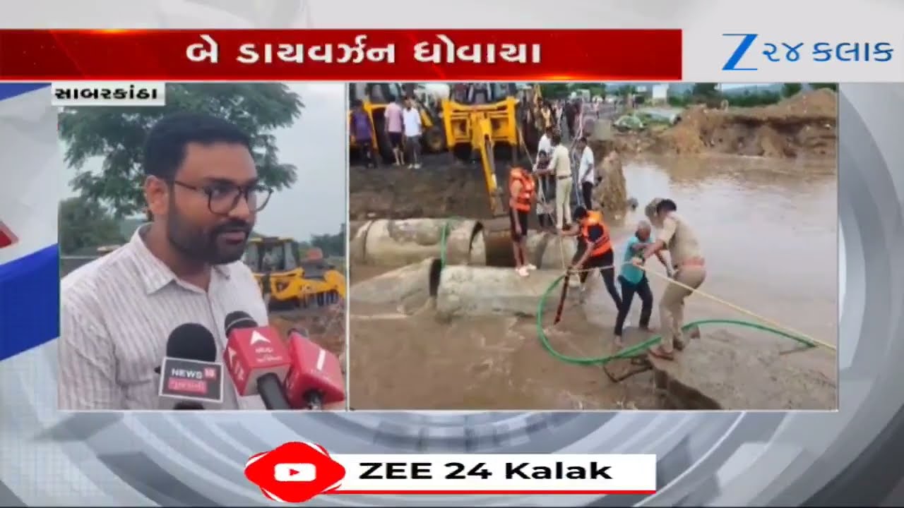 #Zee24Kalak Sabarkanthaના ગાંભોઈ પંથકમાં ભારે વરસાદથી બે ડાયવર્ઝન ધોવાઈ ગયા, બસ સહિત પાંચ વાહનો અટવાઈ ગયા