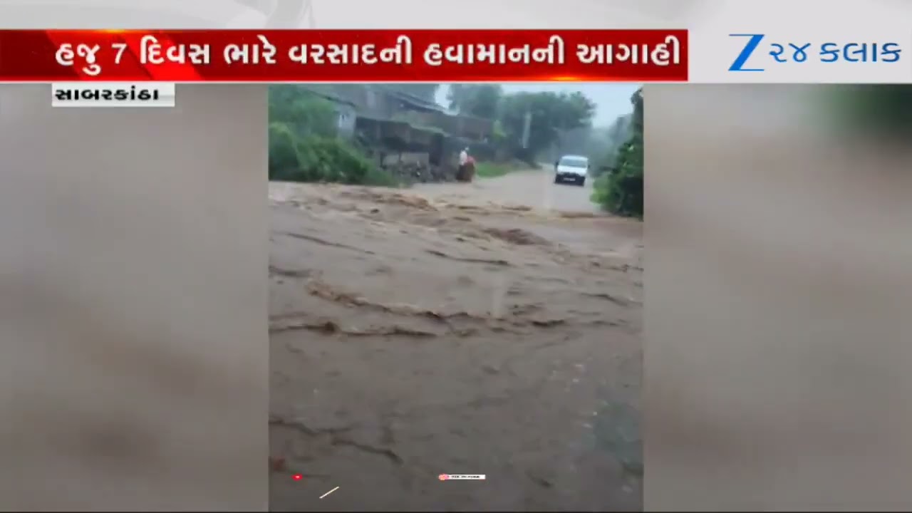 #Zee24Kalak Sabarkantha: Himatnagarના હુંજ પંથકમાં ભારે વરસાદથી શેરીઓમાં વહેતા થયા પાણી