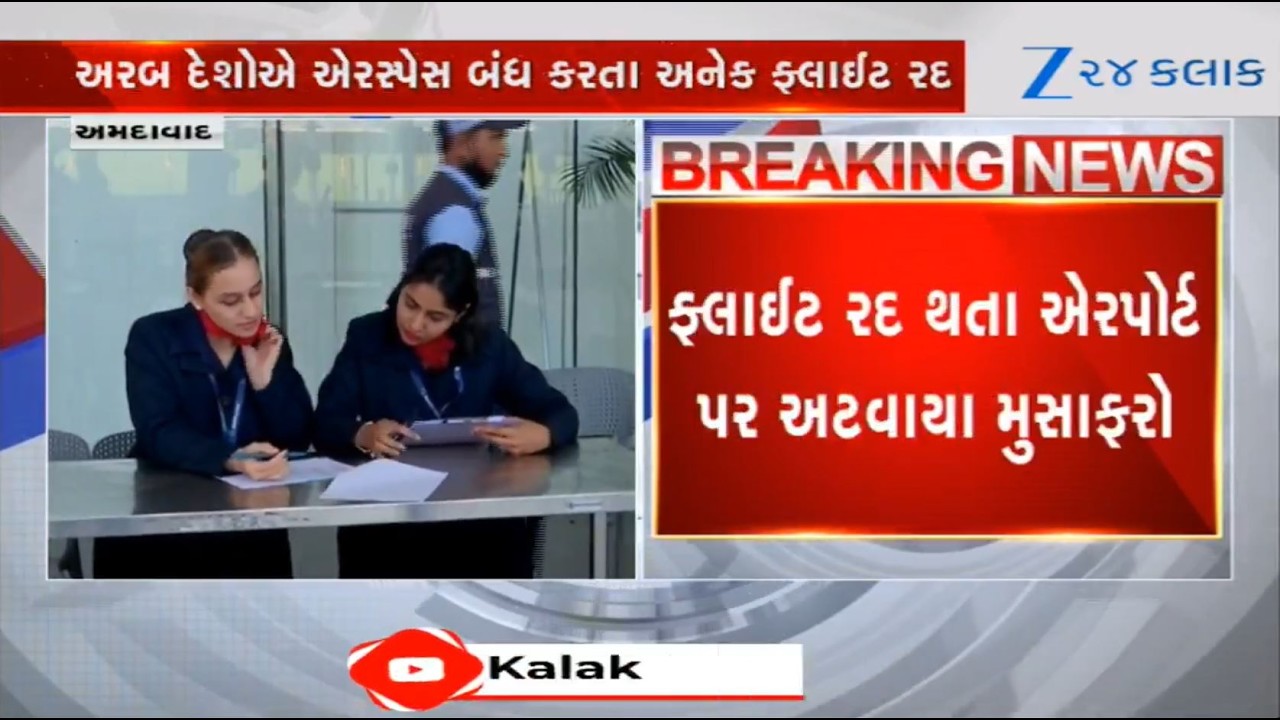#Zee24Kalak Several passengers stranded at Ahmedabad Intl. Airport following war situation between Iran-Israel