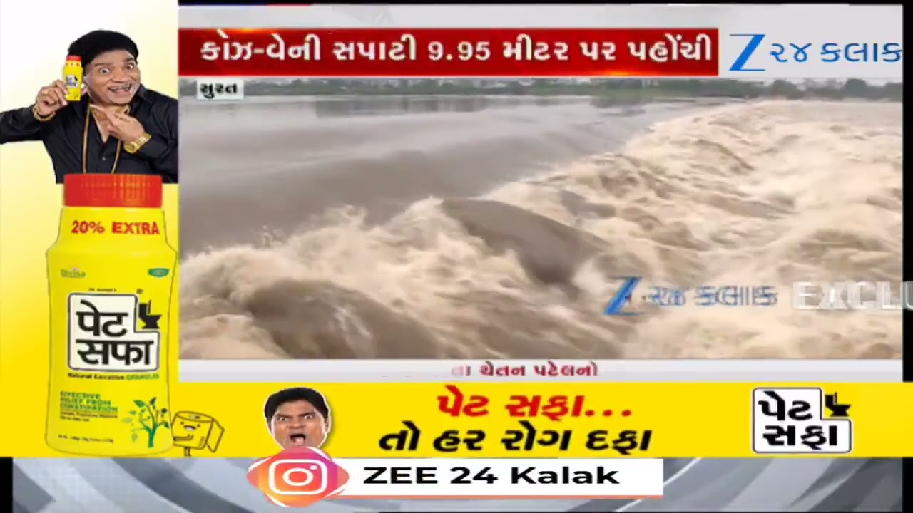 #Zee24Kalak Surat: કૉઝ-વેએ રૌદ્ર સ્વરૂપ ધારણ કર્યું,ઉકાઈ ડેમમાંથી પાણી છોડાતા કૉઝ-વેની સપાટી 9.95 મીટર પર પહોંચી