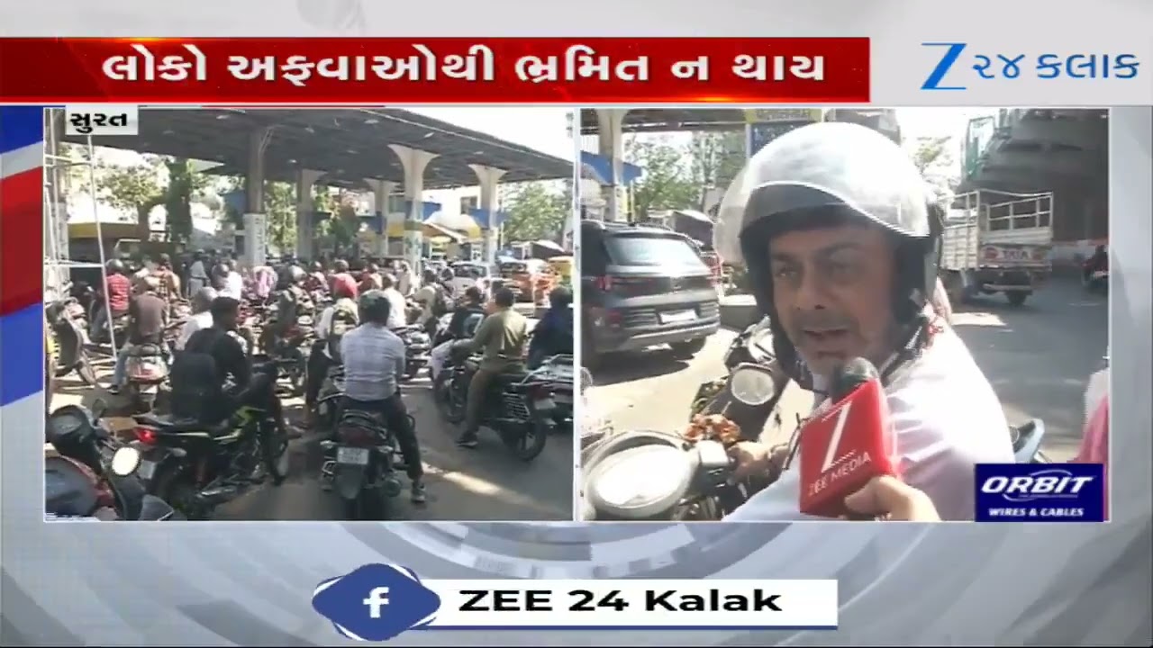#Zee24Kalak Surat News: પેટ્રોલ પંપો પર વહેલી સવારથી કિમી લાંબી લાઈનો; અફવાઓથી ભ્રમિત ન થવા Z 24 કલાકની અપીલ