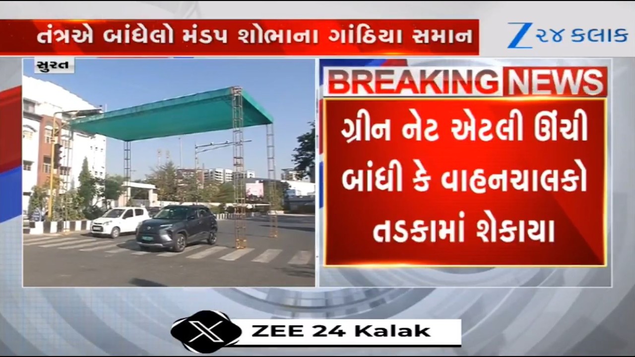 #Zee24Kalak Surat:Green nets tied ‘SO HIGH’ that it fail to provide relief to people waiting at signal amid heat