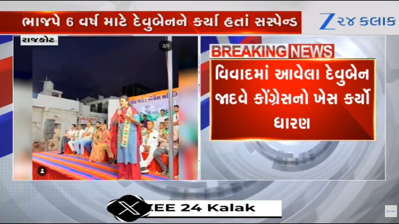 #Zee24Kalak Suspended BJP corporator Devuben Jadav joins Congress in Rajkot ahead of local body elections