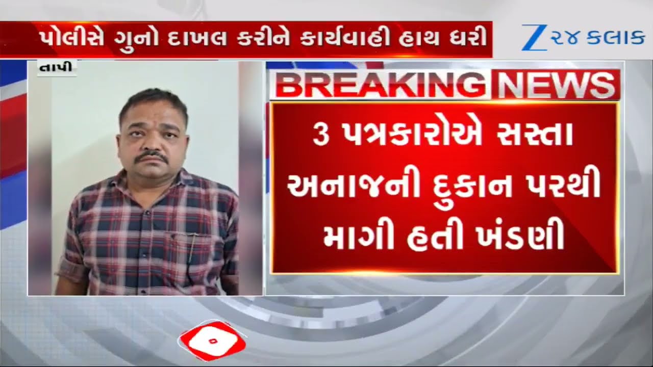 #Zee24Kalak Tapi News: ડોલવણમાં પત્રકારના નામે તોડબાજી; સસ્તા અનાજની દુકાનદાર પાસેથી ખંડણી માંગતા 3 ઝડપાયા
