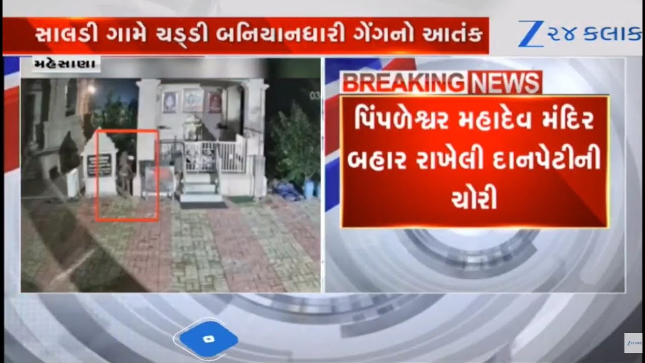 #Zee24Kalak Thieves flee away with donation box kept outside Pipleshwar Mahadev temple at Mehsana’s Saldi