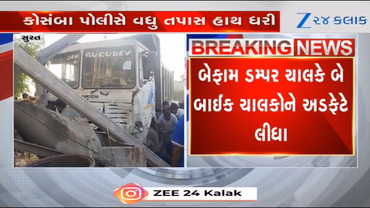 #Zee24Kalak Three dead after being hit by reckless dumper driver in Surat’s Kosamba; cops launch investigation