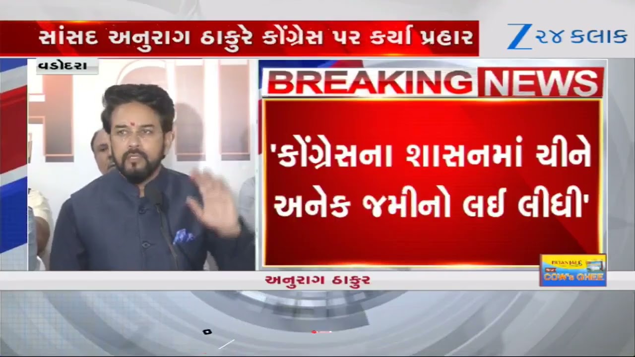 #Zee24Kalak Union Minister Anurag Thakur lashes out at Congress during his visit to Gujarat’s Vadodara