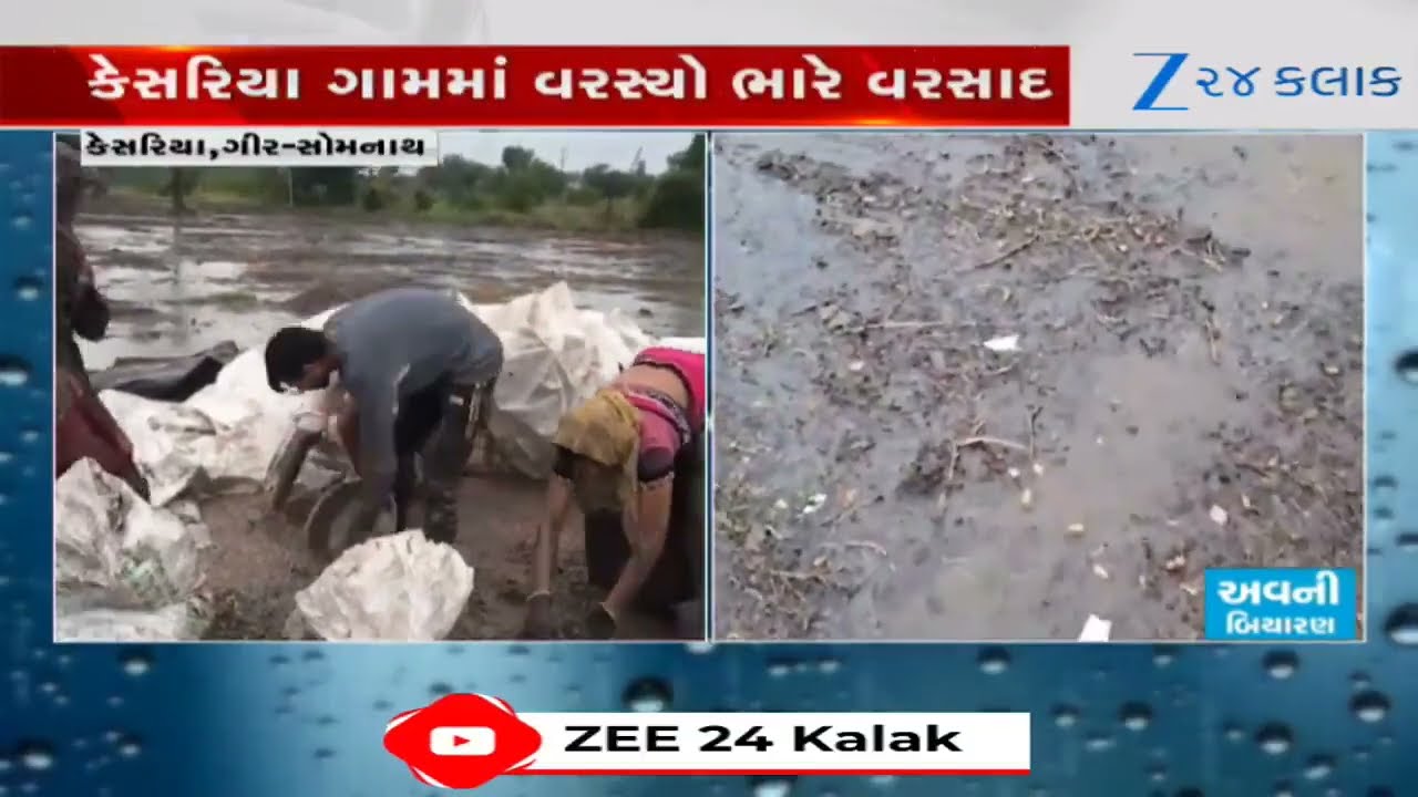 #Zee24Kalak Unseasonal Rain: Gir Somnathમાં કમોસમી વરસાદ, કેસરિયા ગામના ખેતરો બેટમાં ફેરવાયા, મગફળીનો નાશ