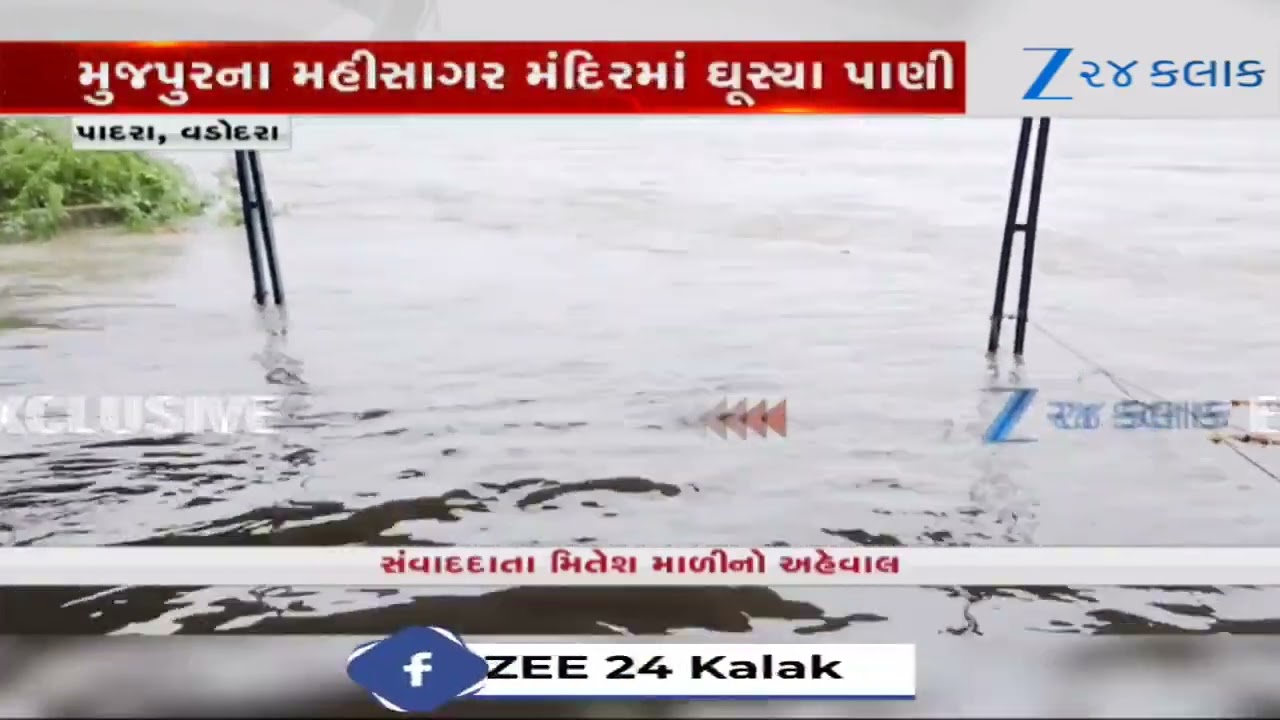 #Zee24Kalak Vadodaraના પાદરામાં મેઘ તાંડવ! મુજપુરના મહીસાગર મંદિરમાં ઘૂસ્યા પાણી, તમામ પગથિયાં પાણીમાં ગરકાવ