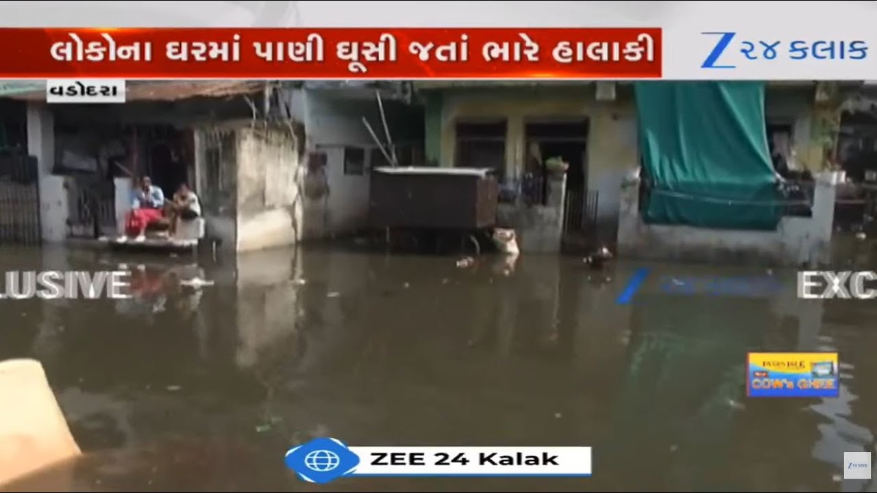 #Zee24Kalak Vadodaraમાં કમોસમી વરસાદથી ઠેર-ઠેર પાણી ભરાયા, વરસાદ બંધ થયાના 12 કલાક બાદ પણ નથી ઓસર્યા પાણી