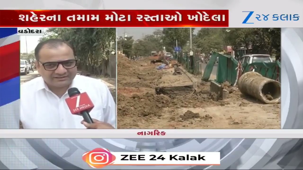 #Zee24Kalak Vadodara પાલિકાએ વિકાસના નામે વિનાશ સર્જ્યો! શહેરના તમામ મોટા રસ્તાઓ ખોદેલા, ટ્રાફિક જામની સમસ્યા