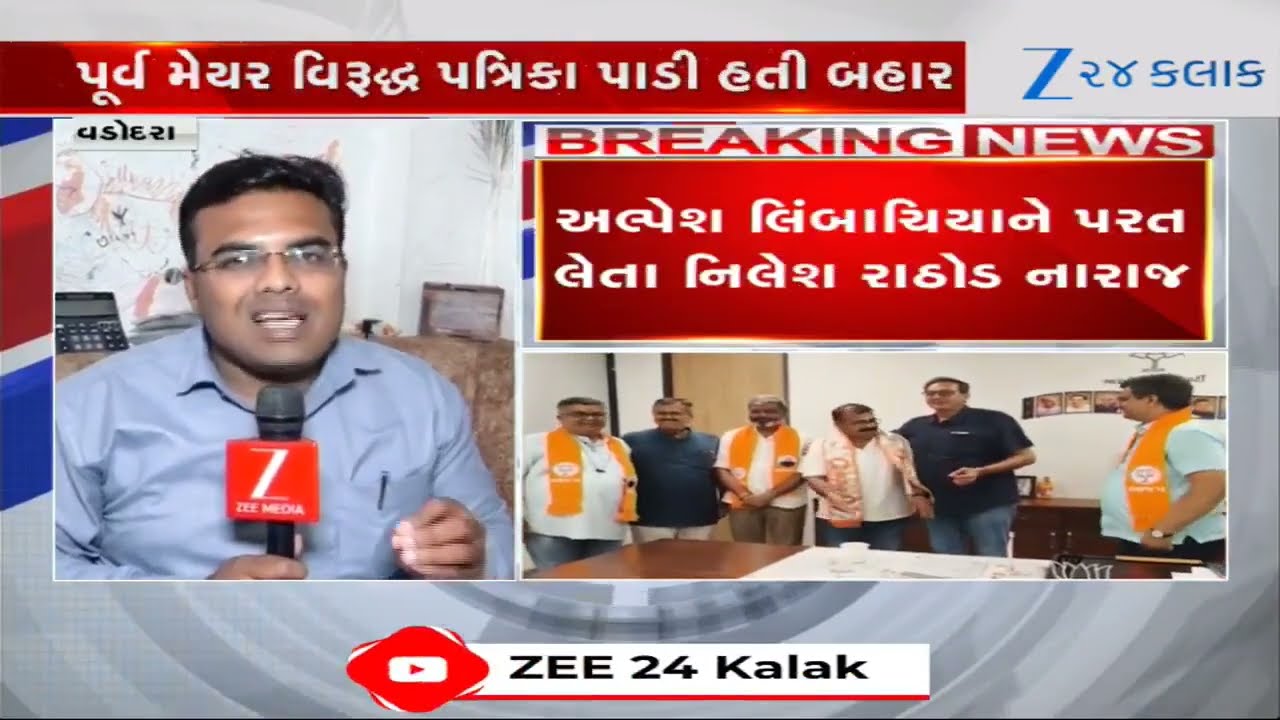 #Zee24Kalak Vadodara: ભાજપમાંથી સસ્પેન્ડ નેતા અલ્પેશ લિંબચિયાને પક્ષમાં પરત લેતા, પૂર્વ મેયર નિલેશ રાઠોડ નારાજ