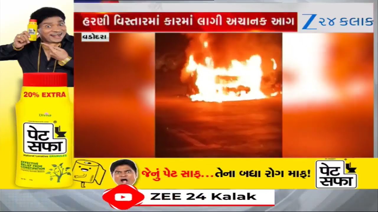 #Zee24Kalak Vadodara: હરણી રોડ પર ચાલતી કારમાં અચાનક ભીષણ આગ, શોર્ટ સર્કિટથી કાર બળીને ખાખ, ચાલકનો આબાદ બચાવ