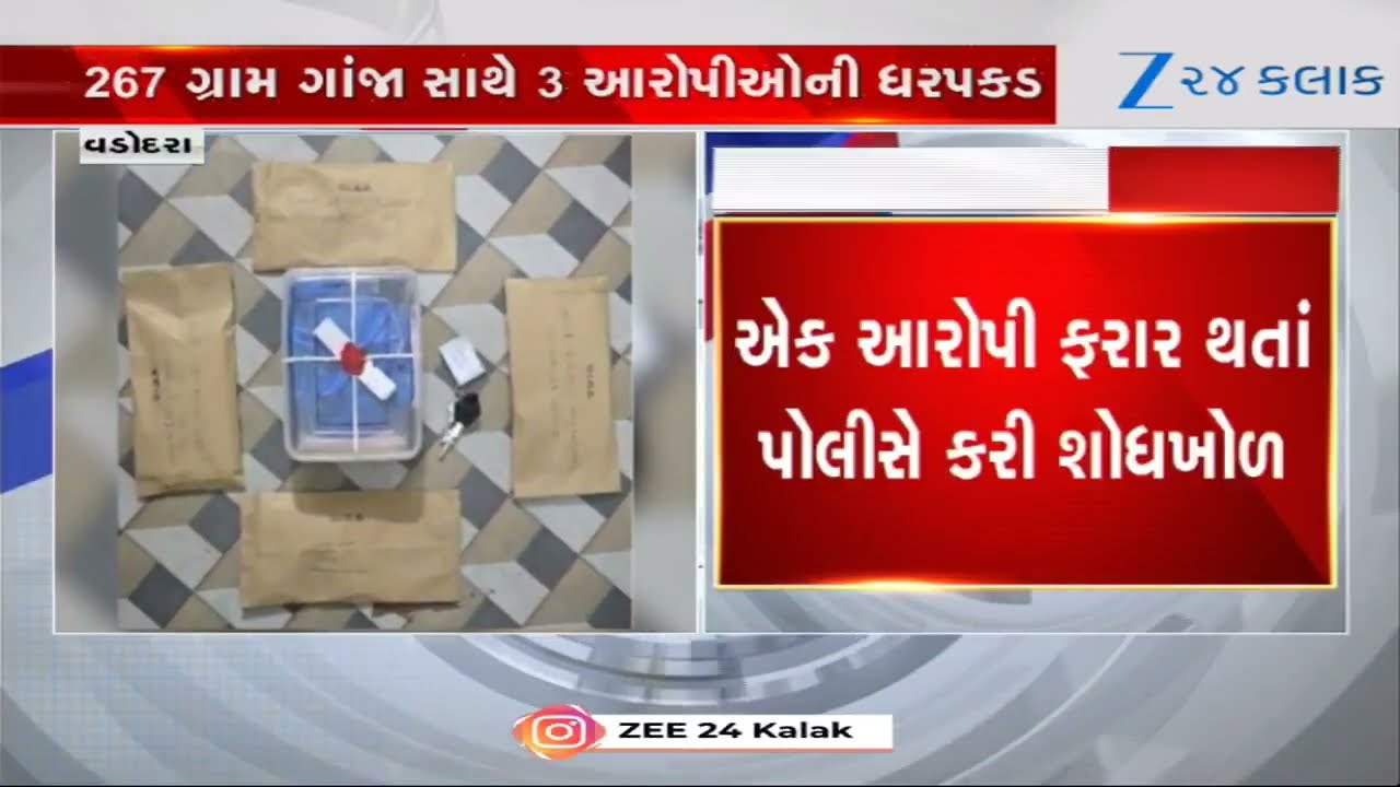 #Zee24Kalak Vadodara News: ડભોઈમાં હાઈબ્રિડ ગાંજાનો પર્દાફાશ; 267 ગ્રામ જથ્થા સાથે 3 ઝડપાયા, એક આરોપી ફરાર