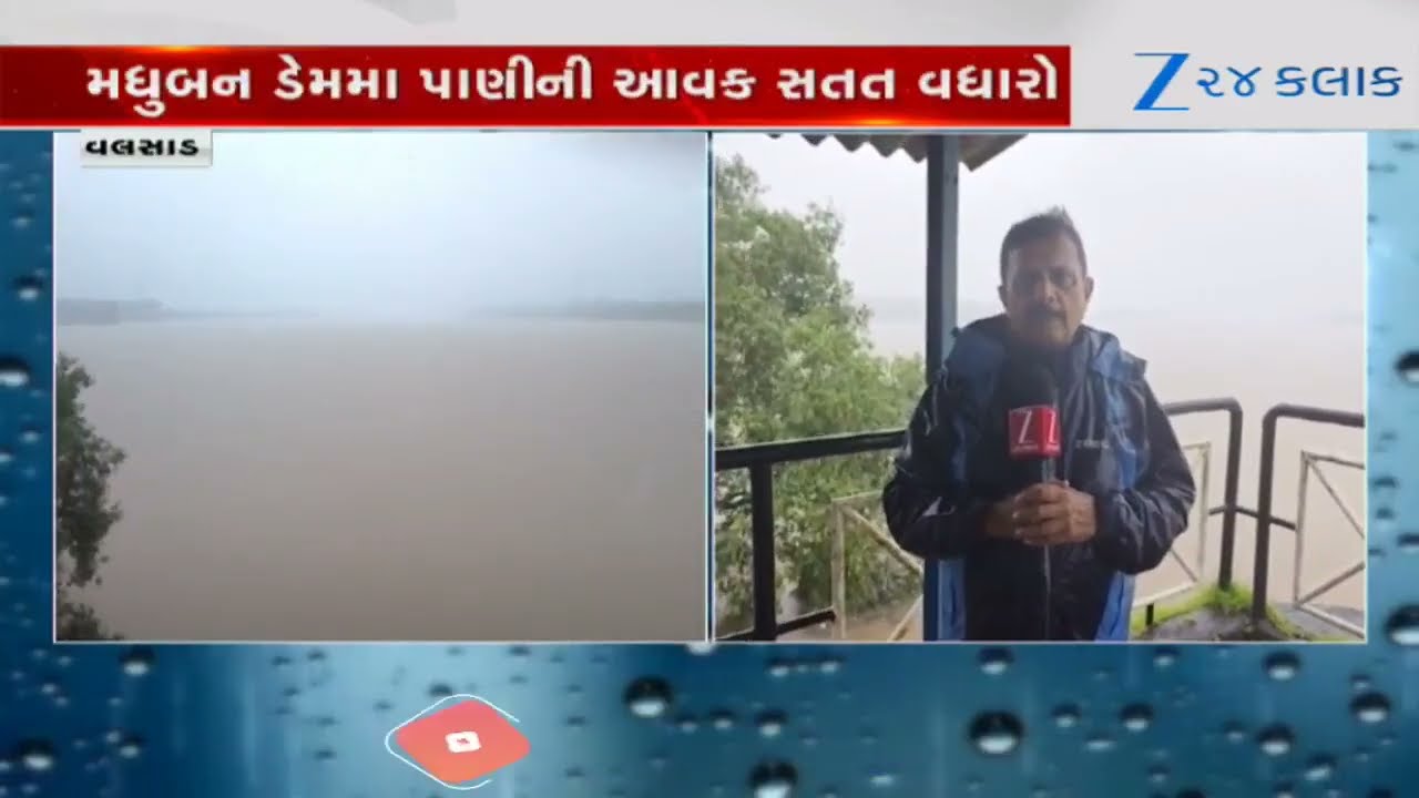 #Zee24Kalak Valsadના કપરાડામાં ભારે વરસાદ વરસ્યો, મધુબન ડેમમા પાણીની આવક સતત વધારો