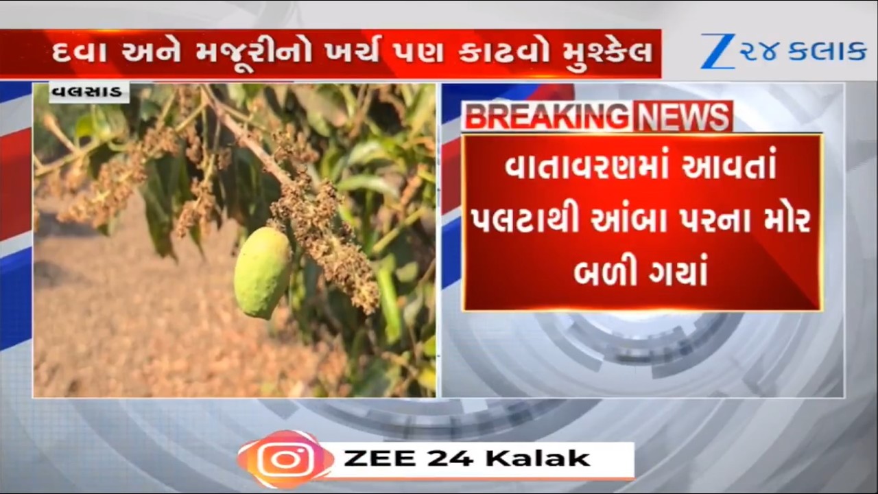 #Zee24Kalak Valsad જિલ્લાના ખેડૂતો પર ચિંતાના વાદળો છવાયા, વાતાવરણમાં પલટાથીઆંબા પર આવેલા કેરીના મોર બળી ગયાં