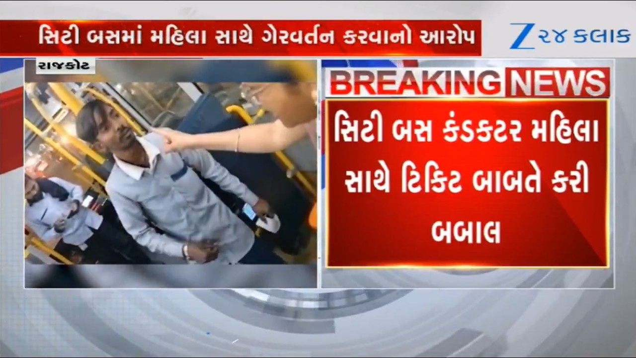 #Zee24Kalak Verbal spat erupts between woman and conductor of Rajkot City Bus over matter of issuing ticket