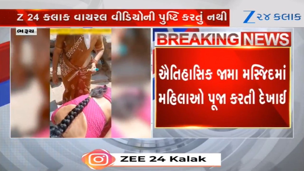 #Zee24Kalak Viral video shows several people performing Puja in Bharuch’s Jama Masjid in presence of cops