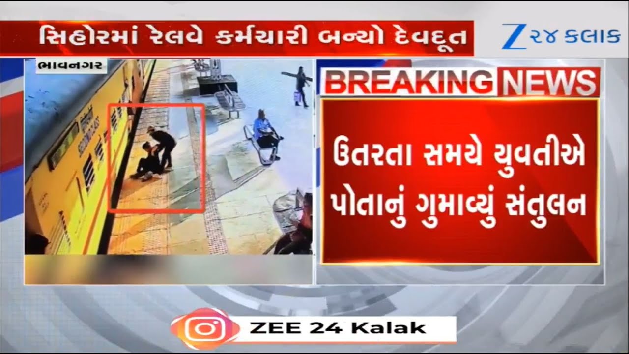 #Zee24Kalak Woman saved by railway official while deboarding moving train in Bhavnagar; incident caught on CCTV