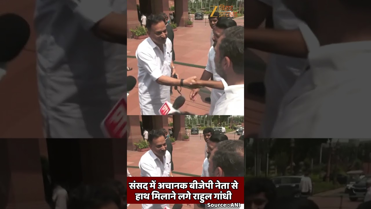 #ZeeBiharJharkhand संसद में अचानक BJP नेता से हाथ मिलाने लगे Rahul Gandhi-बोले- कांग्रेस-BJP के बीच ये अनकॉमन हैंडशेक