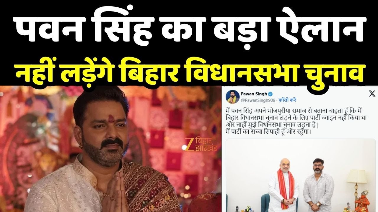 Bihar Assembly Election 2025 : भोजपुरी फिल्म इंडस्ट्री के सुपरस्टार और BJP नेता पवन सिंह ने ऐलान किया है कि वह बिहार विधानसभा चुनाव 2025 में नहीं उतरेंगे… उन्होंने सोशल मीडिया प्लेटफॉर्म एक्स पर इस बारे में पोस्ट डाली है…. लिखा है, ‘मैं पवन सिंह अपने भोजपुरिया समाज से बताना चाहता हूं कि मैं बिहार विधानसभा चुनाव लड़ने के लिए पार्टी जॉइन नहीं किया था और न ही मुझे विधानसभा चुनाव लड़ना है… मैं पार्टी का सच्चा सिपाही हूं और रहूंगा