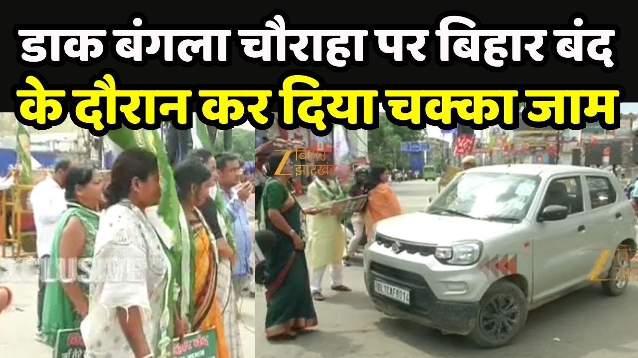 #ZeeBiharJharkhand Bihar Bandh : पटना के डाक बंगला चौराहा पर बिहार बंद के दौरान कर दिया चक्का जाम