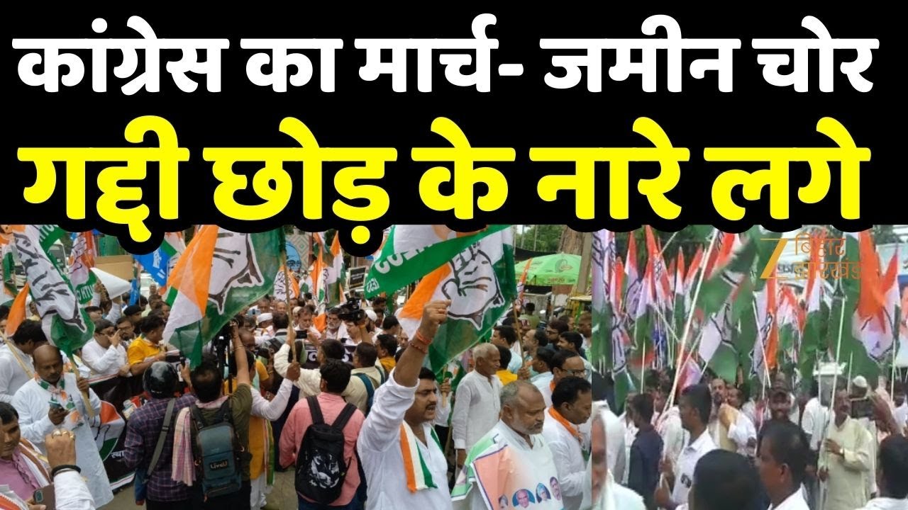 Patna Congress Protest : पटना में कांग्रेस नेता सरकार के खिलाफ विरोध मार्च निकाल रहे हैं…. इसमें जमीन चोर, गद्दी छोड़ के नारे लग रहे हैं…..कांग्रेस का आरोप है कि भागलपुर में सरकार ने 1 रुपए सालाना की दर पर 1,050 एकड़ जमीन और 10 लाख पेड़ अडाणी ग्रुप को दिए हैं….