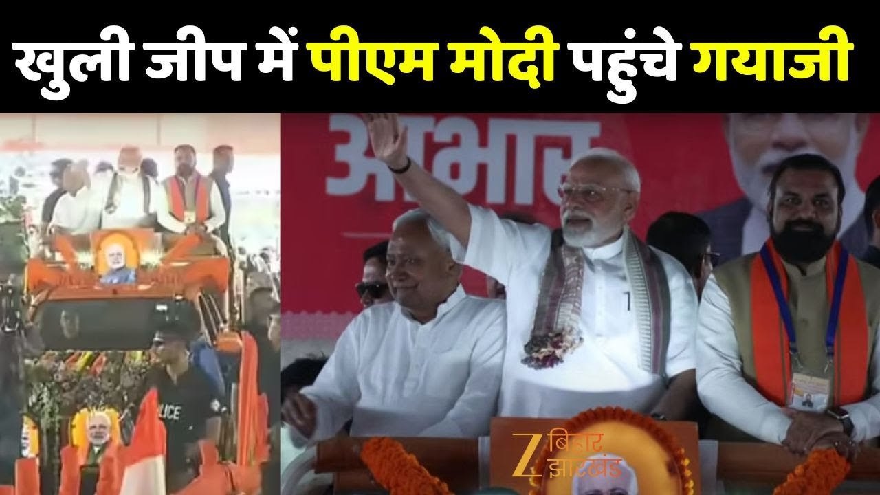 #ZeeBiharJharkhand PM Modi Bihar Visit : गयाजी में खुली जीप में सीएम नीतीश और सम्राट चौधरी के साथ पहुंचे पीएम मोदी