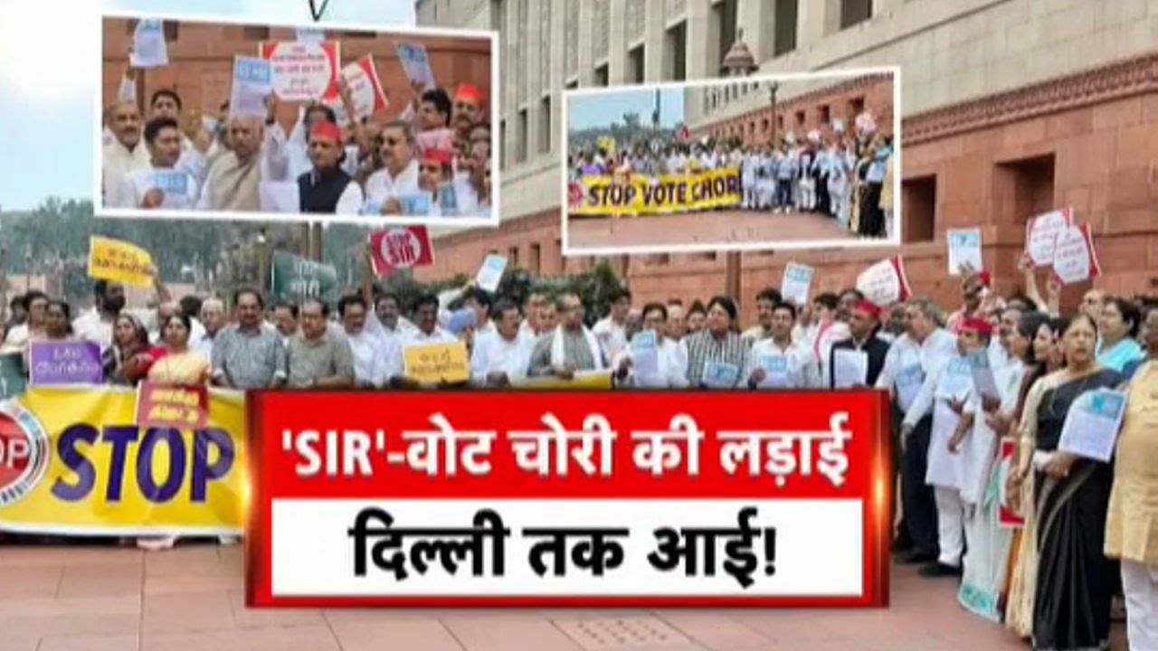 ‘Vote chori’ row:वोट चोरी और SIR के मुद्दे पर विपक्ष अब और अग्रेसिव हो गया है… आज दिल्ली में संसद परिसर में विपक्षी सांसदों ने प्रदर्शन किया…इस दौरान वोट चोरी के नारे लगे….वहीं विपक्ष अब मुख्य चुनाव आयुक्त के खिलाफ बड़ा एक्शन लेने की तैयारी कर रहा है…रिपोर्ट देखिए….