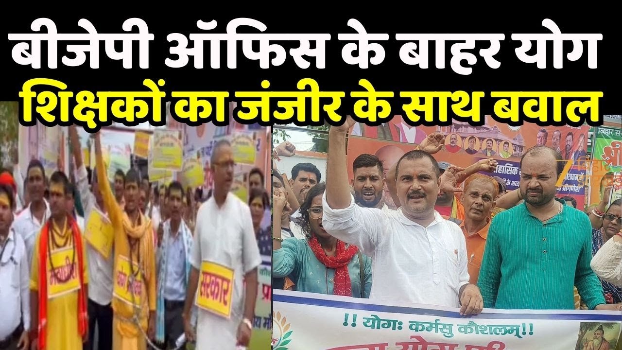 #ZeeBiharJharkhand Yoga Teachers Protest : बीजेपी ऑफिस के बाहर बवाल, जंजीर पहनकर पहुंचे योग शिक्षक