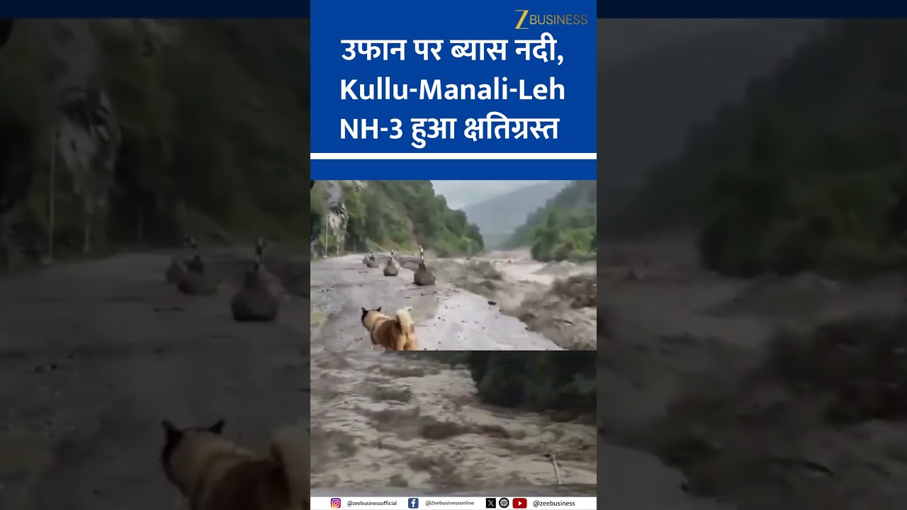 #ZeeBusiness Heavy Rain Floods Beas River | NH-3 Damaged in Kullu-Manali-Leh