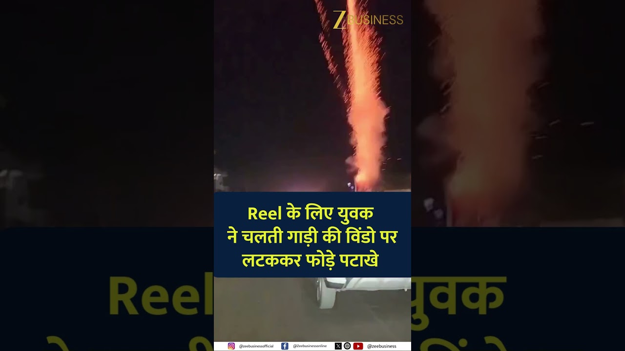 #ZeeBusiness Shocking Stunt in MP: Youth Set Off Firecrackers from Moving Car Roof!
