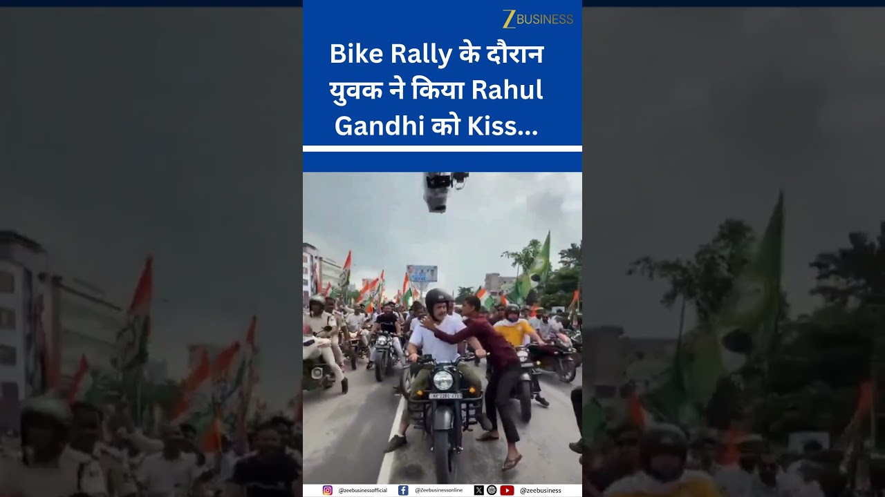#ZeeBusiness Unexpected Moment: Rahul Gandhi Gets Kissed at Purnia Bike Rally