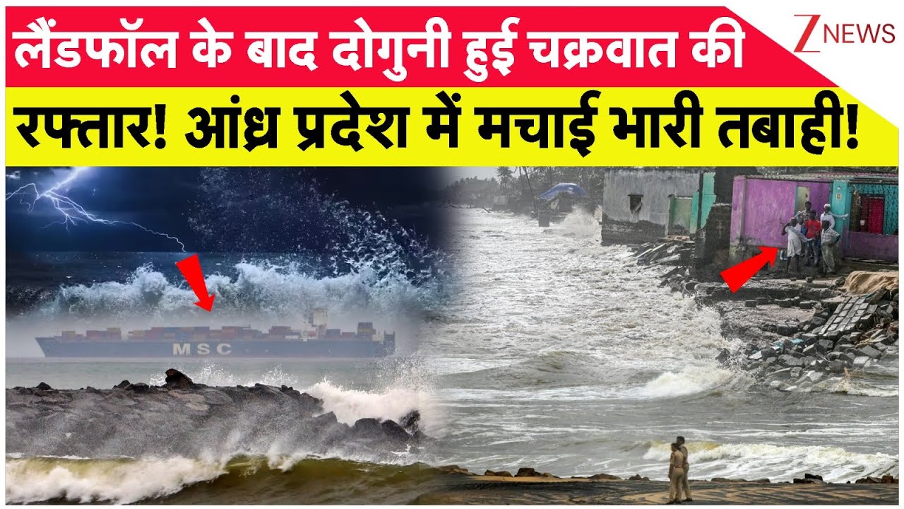 #ZeeNews Cyclone Montha Landfall: लैंडफॉल के बाद दोगुनी हुई चक्रवात की रफ्तार! मचाई भारी तबाही! | Andhra