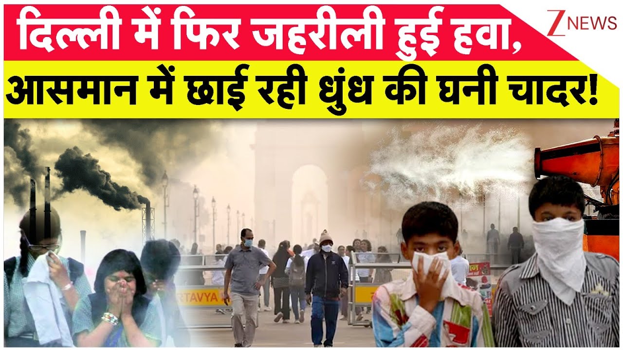 #ZeeNews Delhi Air Pollution : दिल्ली में फिर जहरीली हुई हवा, आसमान में छाई रही धुंध की घनी चादर! |