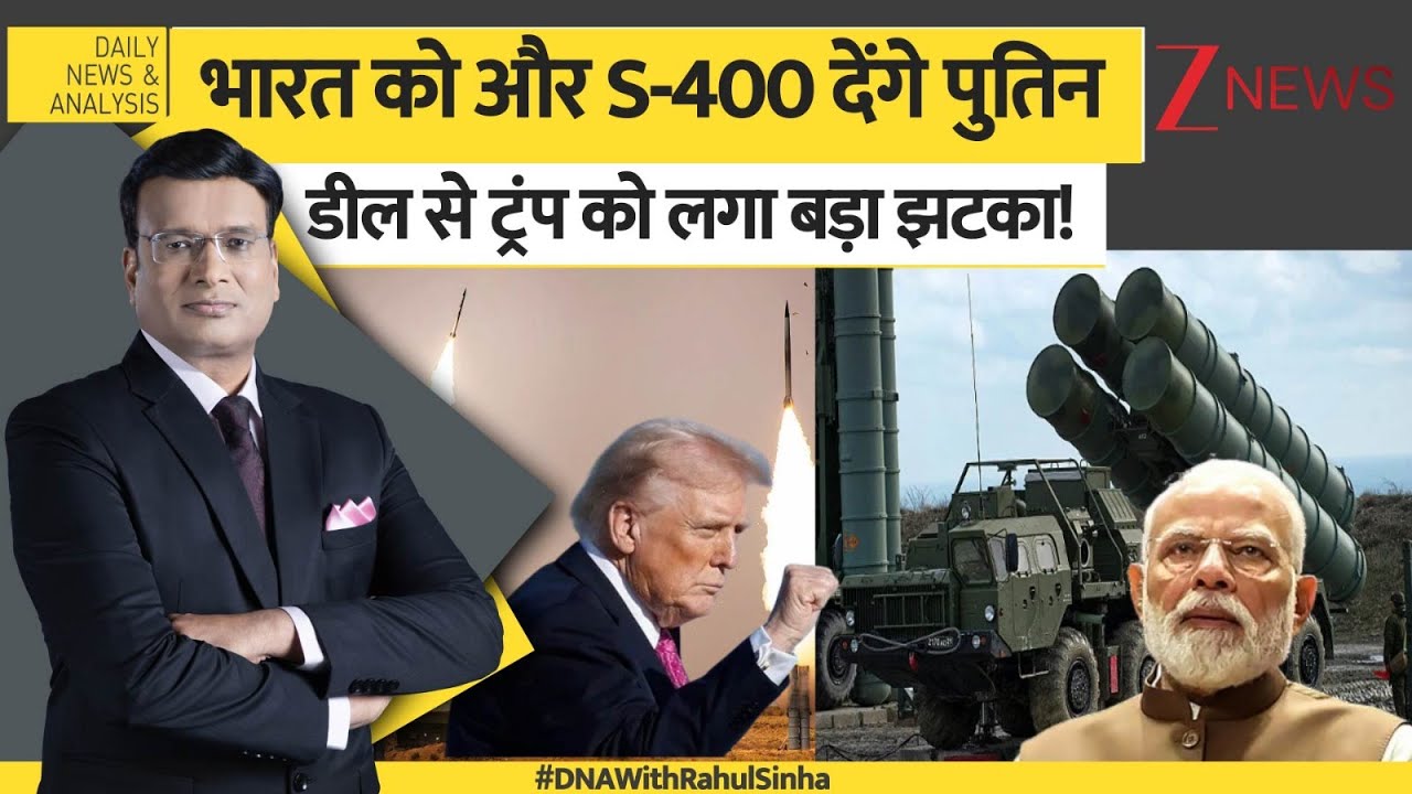 DNA मित्रो, हमारा अगला विश्लेषण भारत की 2 मेगा डील से जुड़ा है। भारत दुनिया की दो महाशक्तियों यानी रूस और अमेरिका के साथ अगले कुछ दिनों में 2 बड़ी डील करने जा रहा है।रूस के साथ जहां भारत अपनी हवाई शक्ति बढ़ाने के उद्देश्य से S-400 एयर डिफेंस सिस्टम के लिए एक और समझौता करने जा रहा है, वहीं अमेरिका के साथ भारत व्यापार समझौता करने वाला है। ख़बर ये है कि अमेरिका ने भारत पर जो 50 प्रतिशत टैरिफ लगाया था, उसे कम करने के लिए तैयार हो गया है। ट्रंप के साथ टैरिफ को लेकर कैसे बनी बात, इसको डिकोड करने से पहले विश्लेषण रूस के साथ डिफेंस डील की। DNA मित्रो, पाकिस्तान के ख़िलाफ़ ऑपरेशन सिंदूर के दौरान आपने सुदर्शन चक्र का नाम सुना होगा। इसी सुदर्शन चक्र कवच का एक महत्वपूर्ण हिस्सा है S-400 ट्रायम्फ एयर डिफेंस सिस्टम । जिसने ऑपरेशन सिंदूर में पाकिस्तानी ड्रोन, मिसाइल और लड़ाकू विमानों से भारत की हवाई सीमा को अभेद्य बना दिया था, पाकिस्तानी हमलों को नाकाम बना दिया था। जिसको नष्ट करने का झूठा दावा भी पाकिस्तान ने किया था।