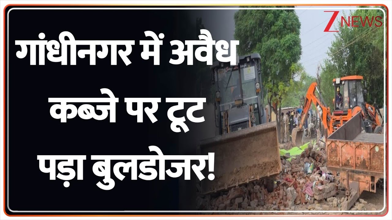 #ZeeNews Gujarat bulldozer action: Gandhi Nagar में अवैध कब्जे पर टूट पड़ा बुलडोजर! | Illegal Construction