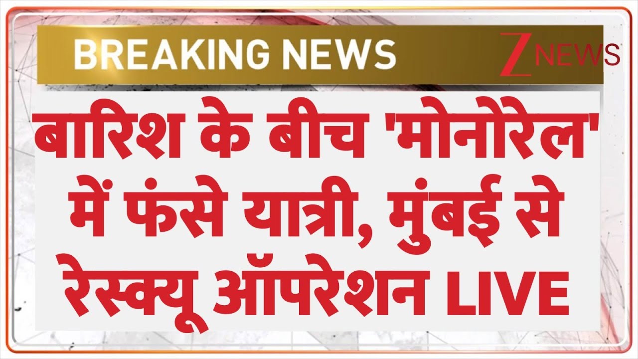 #ZeeNews Mumbai Monorail Breaking: बारिश के बीच ‘मोनोरेल’ में फंसे यात्री, मुंबई से रेस्क्यू ऑपरेशन LIVE! |