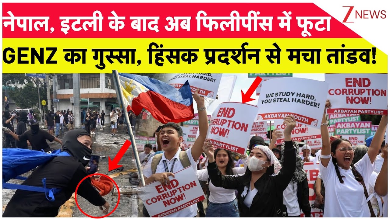 #ZeeNews Nepal, Italy के बाद अब Philippines में फूटा GENZ का गुस्सा, हिंसक प्रदर्शन से मचा तांडव! Protest