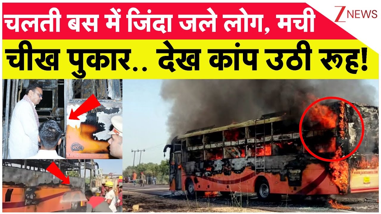 #ZeeNews Rajasthan Bus Fire News: चलती बस में जिंदा जले लोग, मची चीख पुकार.. देख कांप उठी रूह! | Jaisalmer