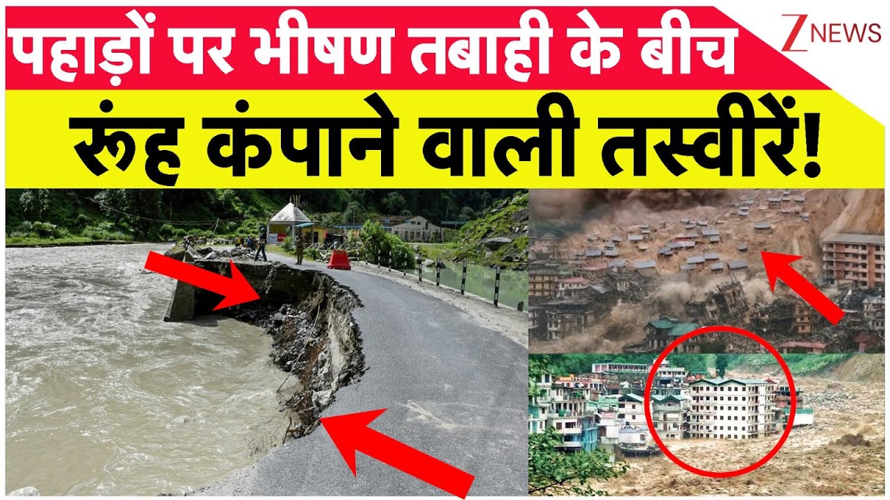 #ZeeNews Weather Update: पहाड़ों पर भीषण तबाही के बीच रूंह कंपाने वाली तस्वीरें! | Flood 2025 | Himachal