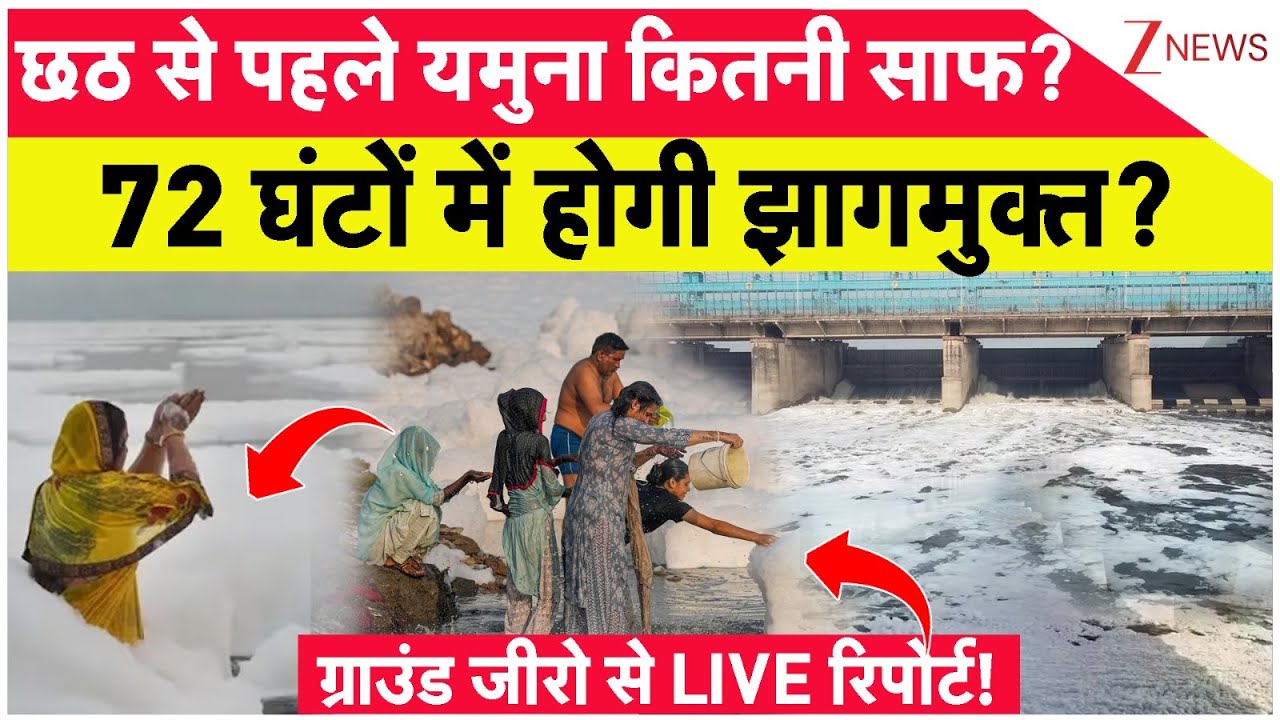#ZeeNews Yamuna Ground Report: छठ से पहले यमुना कितनी साफ? 72 घंटों में होगी झागमुक्त? | Cleanliness Drive