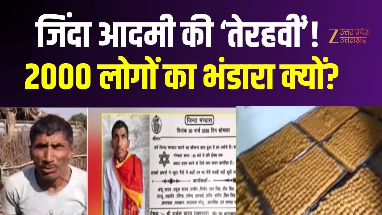 #ZeeUttarPradeshUttaraKhand Auraiya News : जिंदा आदमी की ‘तेरहवीं’! 2000 लोगों का भंडारा क्यों? | Tehravi |