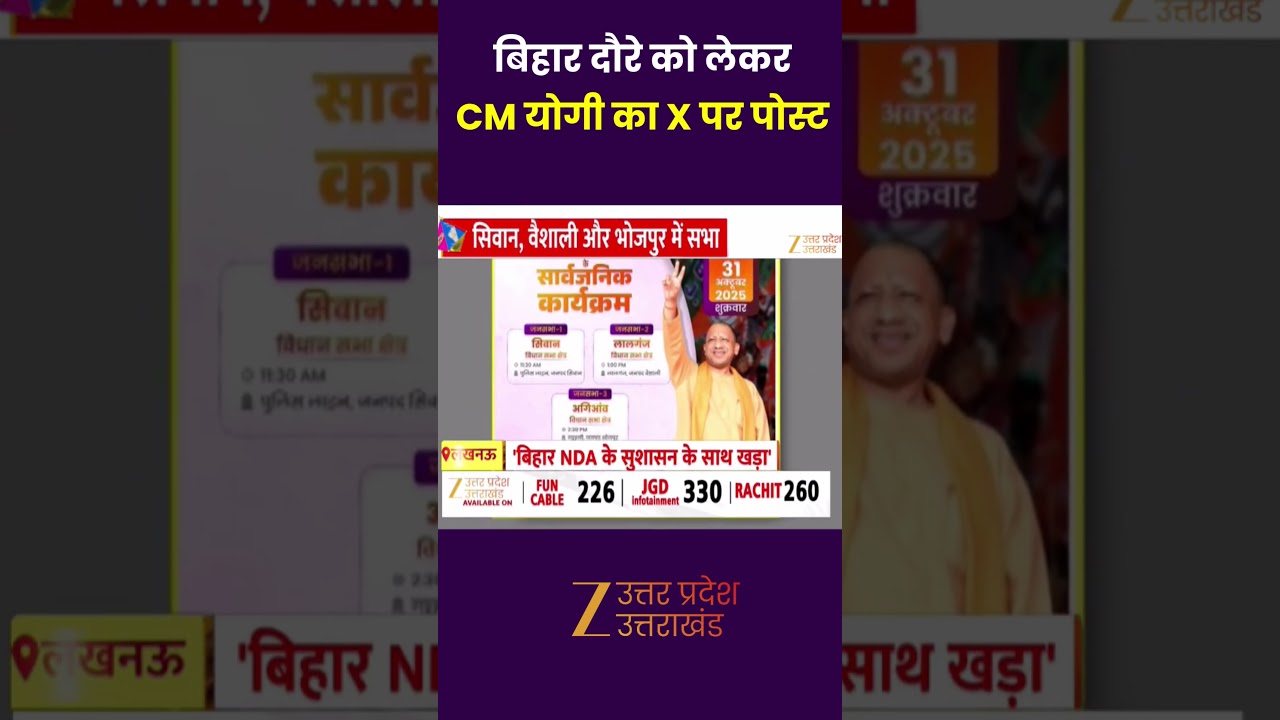 CM Yogi Bihar Visit : बिहार दौरे को लेकर CM योगी का X पर पोस्ट | CM Yogi | Zee UPUK |