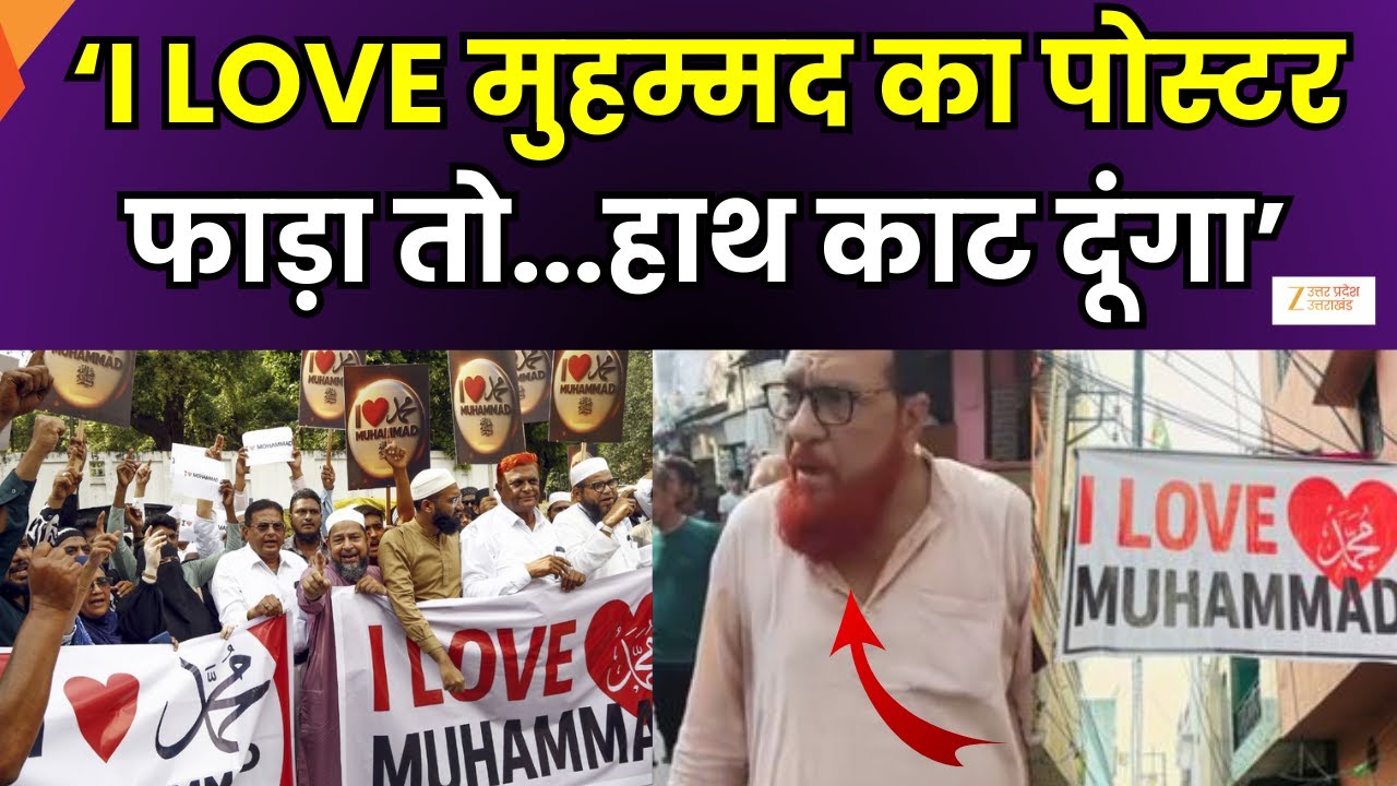 I Love Mohammad Procession : कौन बढ़ा रहा उपद्रवियों का हौसला ? पोस्टर हटाया, मौलाना ने धमकाया, तौकीर का मौलाना बोला..’हाथ काट दूंगा’, ‘आई लव मुहम्मद’ का पोस्टर, पुलिस को धमकी