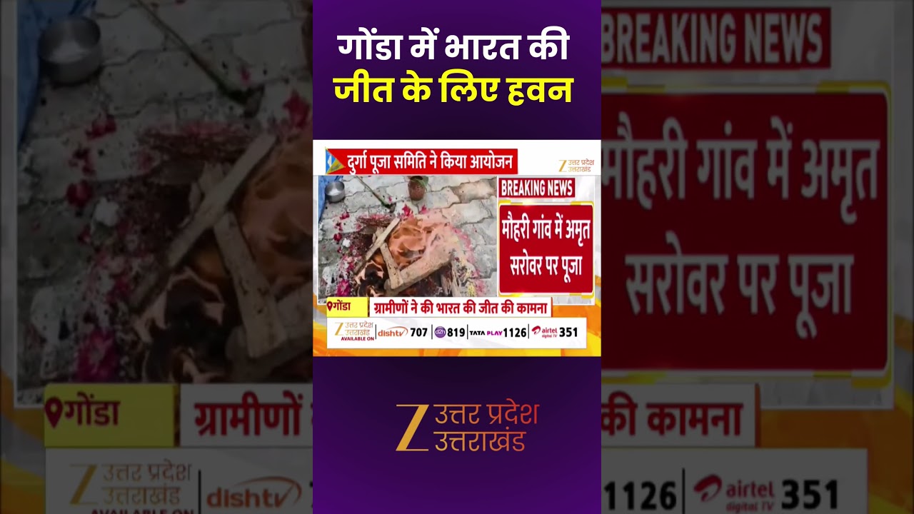#ZeeUttarPradeshUttaraKhand India Vs Pakistan : गोंडा में भारत की जीत के लिए हवन, मौहरी गांव में अमृत सरोवर पर पूजा