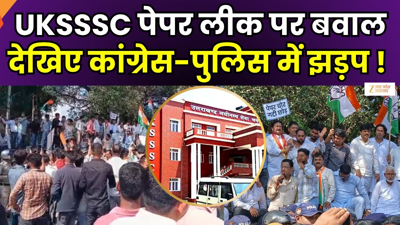 #ZeeUttarPradeshUttaraKhand UKSSSC Paper Leak Protest : पेपर लीक पर कांग्रेस का हल्ला बोल, UKSSSC अध्यक्ष के इस्तीफे की मांग